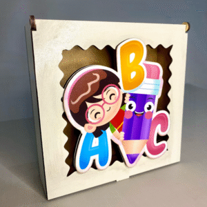 Caixa ABC MDF Branco com Adesivo no MDF – 15x12x4,5 cm