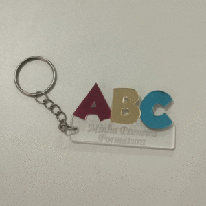Chaveiro ABC em Acrílico – 6x4 cm 🎓
