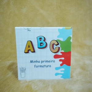 Caixa Formatura ABC Colorido MDF Branco – 13x13x5 cm