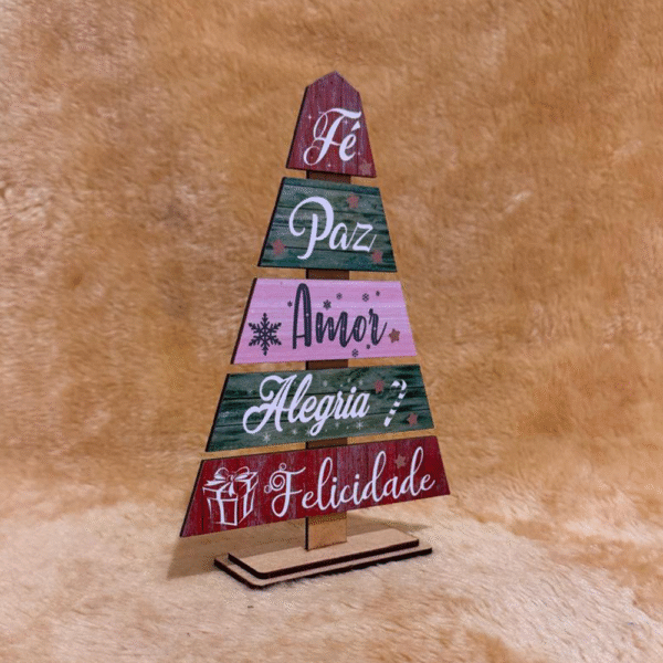 Encante sua decoração de Natal com esta linda árvore de MDF com frases natalinas 22,5×14,5cm.