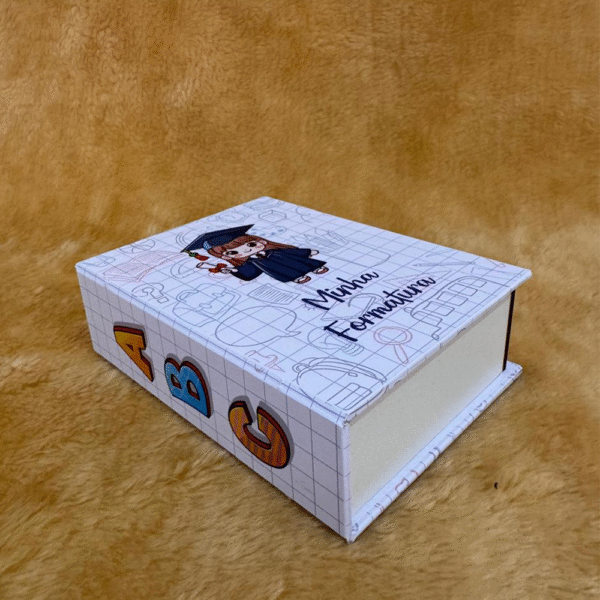 Com tamanho ideal (12,5x16x4 cm), ela é perfeita para guardar fotos, mensagens, lembrancinhas ou pequenos objetos da sua formatura. Além de funcional, é uma linda peça decorativa que vai deixar suas recordações ainda mais especiais.