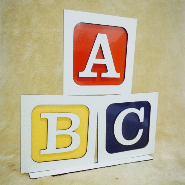 Ideal para decoração de festas escolares, painéis temáticos ou lembranças personalizadas, a placa traz as letras A, B e C em alto-relevo, simbolizando os primeiros passos na jornada do aprendizado. 💛