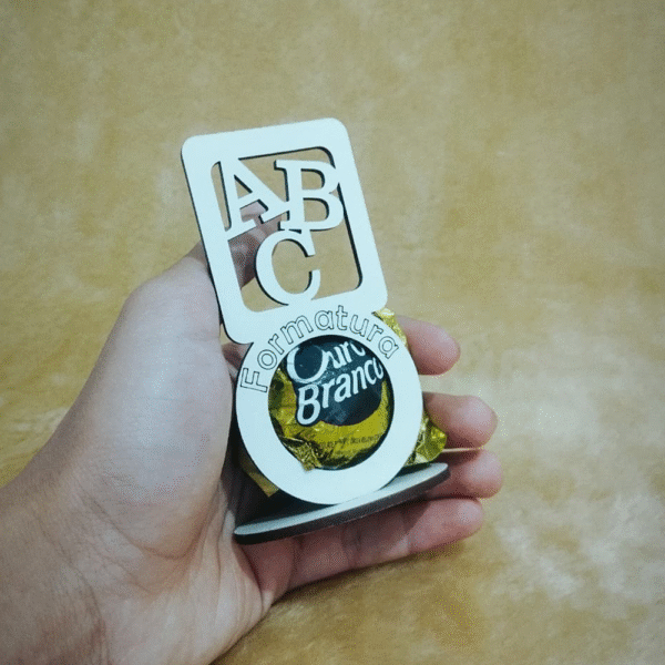 Produzido em MDF de alta qualidade, o design traz o clássico tema ABC da formatura, com acabamento delicado e espaço perfeito para colocar um bombom 🍬, tornando o momento ainda mais doce e inesquecível.