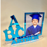 Encante-se com este lindo porta-retrato em acrílico, perfeito para eternizar o momento especial da formatura do ABC! Com design moderno e acabamento brilhante, ele traz o toque sofisticado do acrílico azul espelhado, destacando a foto com elegância e alegria.