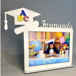 Registre o momento mais especial da formatura do ABC com este lindo porta-retrato Formanda em MDF branco! Seu design encantador traz o charme do chapéu de formatura com letras coloridas (A, B, C) e a palavra “Formanda” em destaque, tornando-o uma lembrança inesquecível! 💖